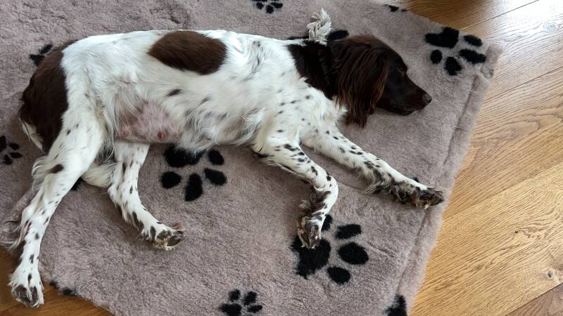 We zitten nu in week 7 van de dracht en met Livka gaat het prima; ze is best nog wel actief. Hoewel wij voorzichter worden met los lopen, is het belangrijk dat ze actief blijft en conditie houdt. Het ‘rennen’ bij de Maarnse Zandverstuiving (Koeheuvel) doet ze nog steeds graag, waarbij het ‘inspecteren’ van de konijnenholen een soort vast ritueel is geworden. En dan thuis lekker slapen!